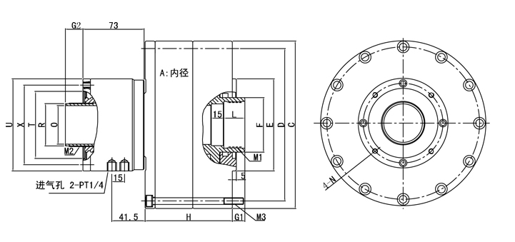 RQ-B中空雙活塞型回轉(zhuǎn)氣缸技術(shù)參數(shù) ·大通孔,雙活塞設(shè)計(jì),拉力能加大1倍。通孔貫穿可加工長軸類零件。 ·輕量型,高轉(zhuǎn)型,閥體經(jīng)特殊設(shè)計(jì),能使壓縮空氣的消耗量節(jié)減,充分發(fā)揮高效經(jīng)濟(jì)效益。 ·內(nèi)部零部件皆采用進(jìn)口原件,運(yùn)動平衡,高壽命。特大通孔可根據(jù)客戶需求定制。 ·使用時(shí)請注入微量油霧
