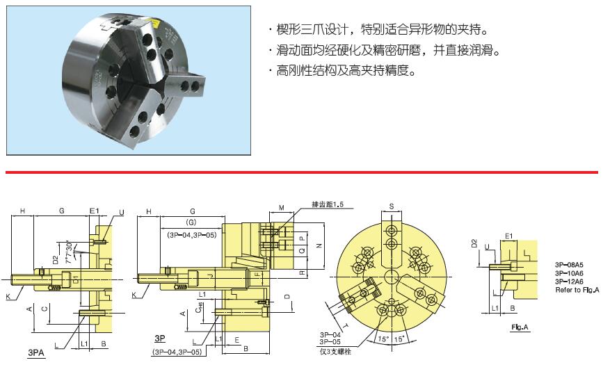 << 2P型二爪中實動力夾頭 >> 4P型四爪中實動力夾頭